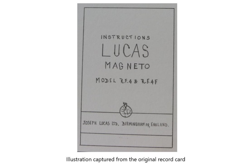 About this objectA twelve page illustrated booklet (including cover), "Instruction for Lucas Magneto Model RF4 & RF4F Joseph Lucas LTD".