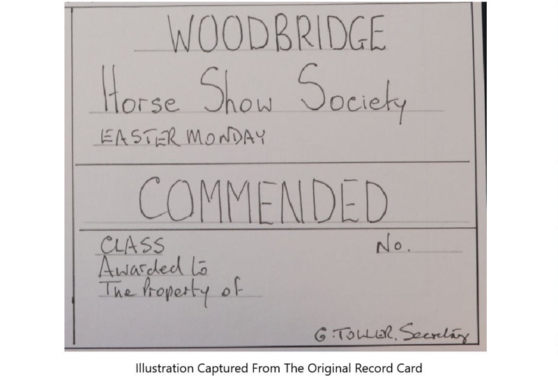 Inscription and MarksThe printed inscription reads: 'Woodbridge Horse Show Society. Easter Monday. COMMENDED. G. Toller, Secretary'.