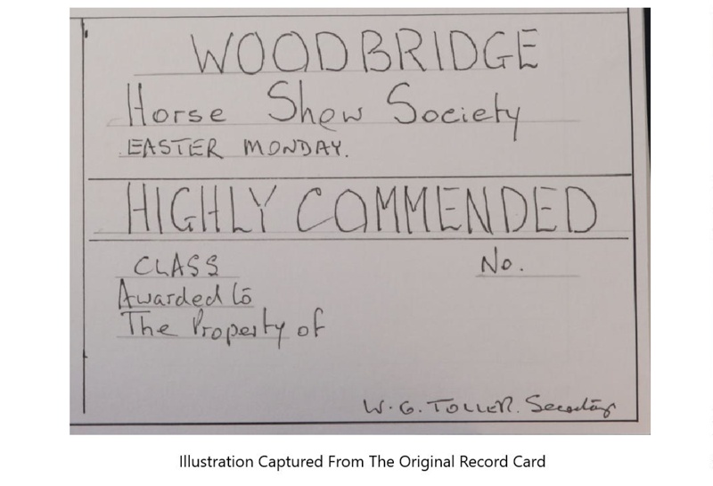 Subject and Association DescriptionIssuer: Woodbridge Horse Show Society, Woodbridge. Highly Commended Certificate