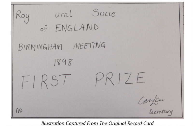 The printed inscription reads: 'Roy... ......ural Socie... of England. Birmingham Meeting 1898. FIRST PRIZE'.