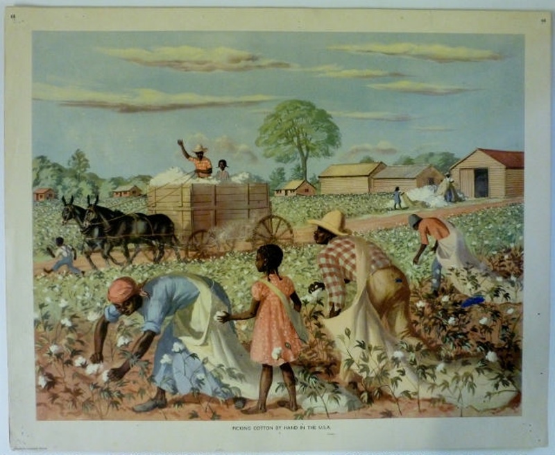 Inscription and MarksInscription printed bottom centre reads: 'Picking Cotton by Hand in the USA'.